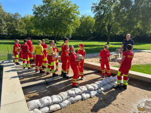 Neben allerhand Theorie kam auch die praktische Ausbildung nicht zu kurz: Während am Freitagabend unter anderem der Umgang mit Stromgenerator, Beleuchtungseinrichtungen und Bolzenschneidern geübt wurde, galt es am Samstag das Befüllen und den Verbau von Sandsäcken zu üben bevor es bei sommerlichen 33 Grad ins Wasser ging. Abgerundet wurde der Abend durch Planspiele mit verschiedenen Einsatzszenarien.