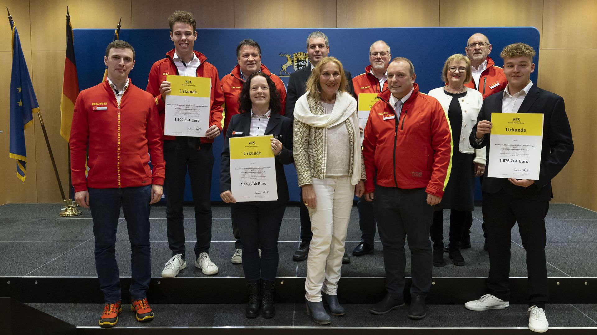 Die Vorsitzenden Sonja Büttner-Roth und Andreas Wolz nahmen im Beisein des Präsidenten des DLRG Landesverbands Baden Felix Strobel und dem Wahlkreisabgeordneten und Landtagsvizepräsidenten Prof. Dr. Wolfgang Reinhart die Förderurkunde in Höhe von 1,44 Mio Euro vom Innenminister Thomas Strobl entgegen.