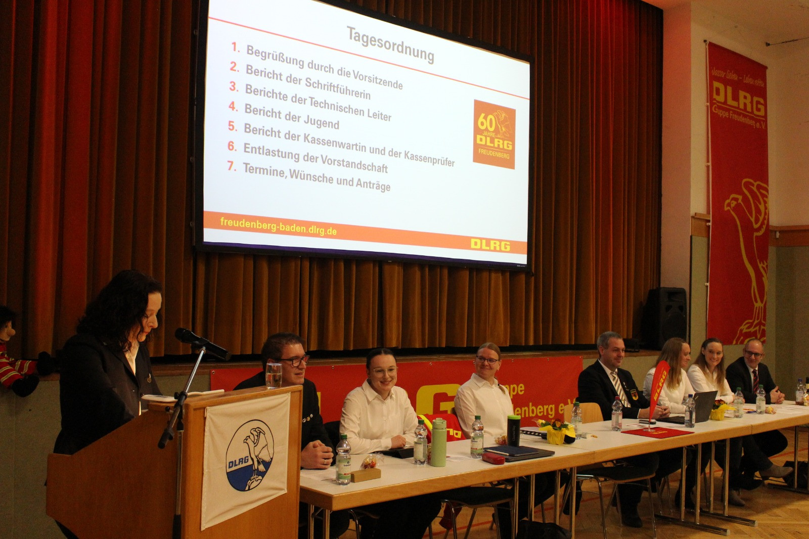 Am 28.02.2026 begrüßte die 1. Vorsitzende Sonja-Büttner Roth 89 Anwesende zur Mitgliederversammlung. Sie dankte der Stadtverwaltung, den Gemeinderäten, dem Bauhof samt Badeaufsichten und der Feuerwehr für die Unterstützung und gute Zusammenarbeit im vergangenen Jahr. Beim gemeinsamen Rückblick auf das Jahr 2025 machte Sonja Büttner-Roth deutlich, wie ereignisreich die vergangenen Monate für den Verein waren. Von einem „ganz normalen Vereinsjahr“ sprach sie – wohl wissend, dass „normal“ bei der DLRG alles andere als ruhig bedeutet.