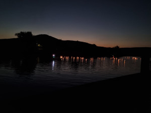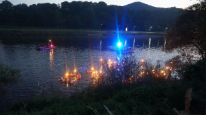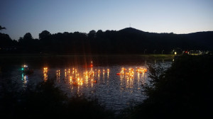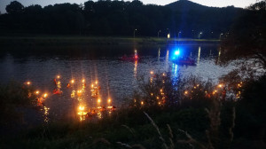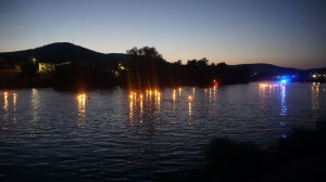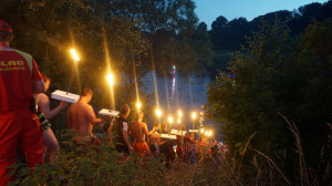 Das Teilnehmerfeld war wie immer bunt gemischt. Manche sind zum ersten Mal mitgeschwommen, andere sind schon öfter oder sogar schon immer dabei. Nach der Sicherheitsbelehrung, Ausgabe und dem Entzünden der Fackeln gab es die letzten Anweisungen und dann ging es ab ins Wasser. Abgesichert wurden die Schwimmer von den Booten der DLRG Wertheim, Höpfingen und unserem frisch gesegneten und getauften Boot Seeadler. Ein Einsatztaucher war einsatzbereit auf unserem Boot und zwei Kameraden begleiteten die Schwimmer auf Rettungsbrettern. Auch an Land waren vier Einsatztruppmitglieder zur Sicherung immer auf Höhe der Schwimmer. Die 1,1 Kilometer lange Strecke war gesäumt von begeisterten Zuschauern, die die Schwimmer anfeuerten. Es gab immer wieder tosenden Applaus.
