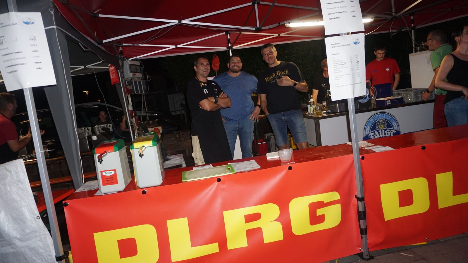 Nach der Segnung und Taufe unseres Motorrettungsbootes am Bootsanleger ging es direkt zum gemütlichen Teil über. Für das leibliche Wohl war mit kühlen Getränken, Steaks, Würstchen, Currywurst und Pommes bestens gesorgt. Musikalisch umrahmt wurde der Abend von der Band „Alive“. Auch für die Kleinen war etwas geboten. Unsere DLRG Jugend hat sich in diesem Jahr einige Spiele einfallen lassen, die bei den Kindern sehr gut ankamen.
