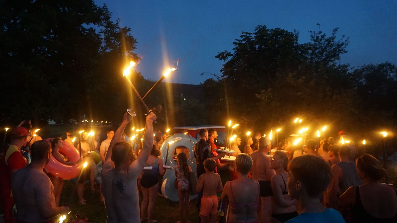 Bei hochsommerlichen Temperaturen fand am Samstag, den 24.06.2023 unser 13. Fackelschwimmen mit Sommernachtsfest auf dem Festplatz am Main statt.